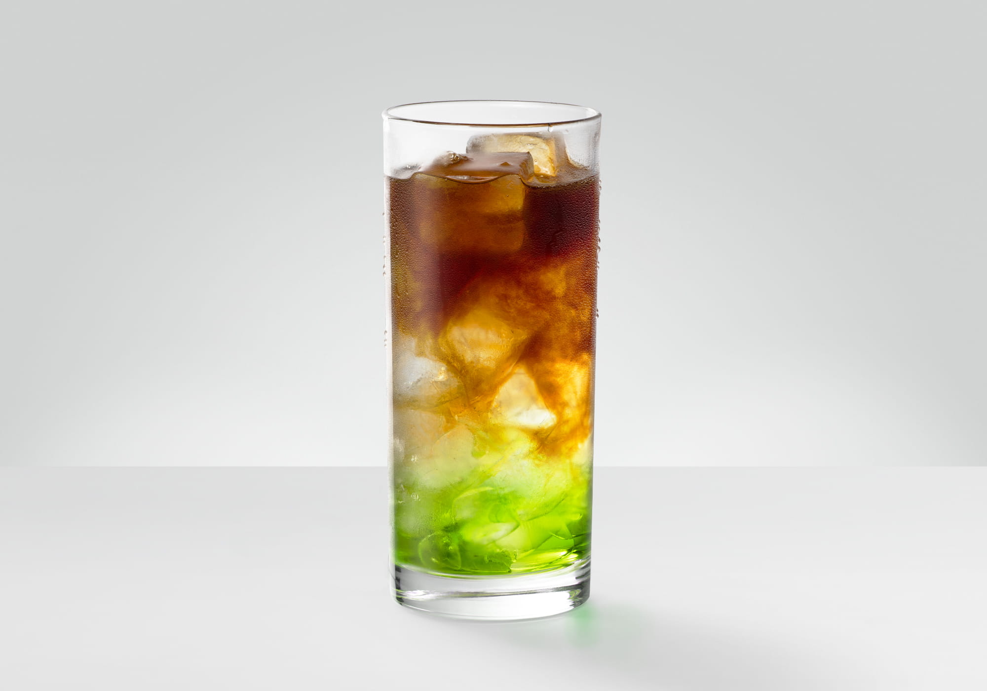 • Vierta el licor de melón y después la gaseosa de limón hasta llenar aproximadamente dos tercios del vaso.