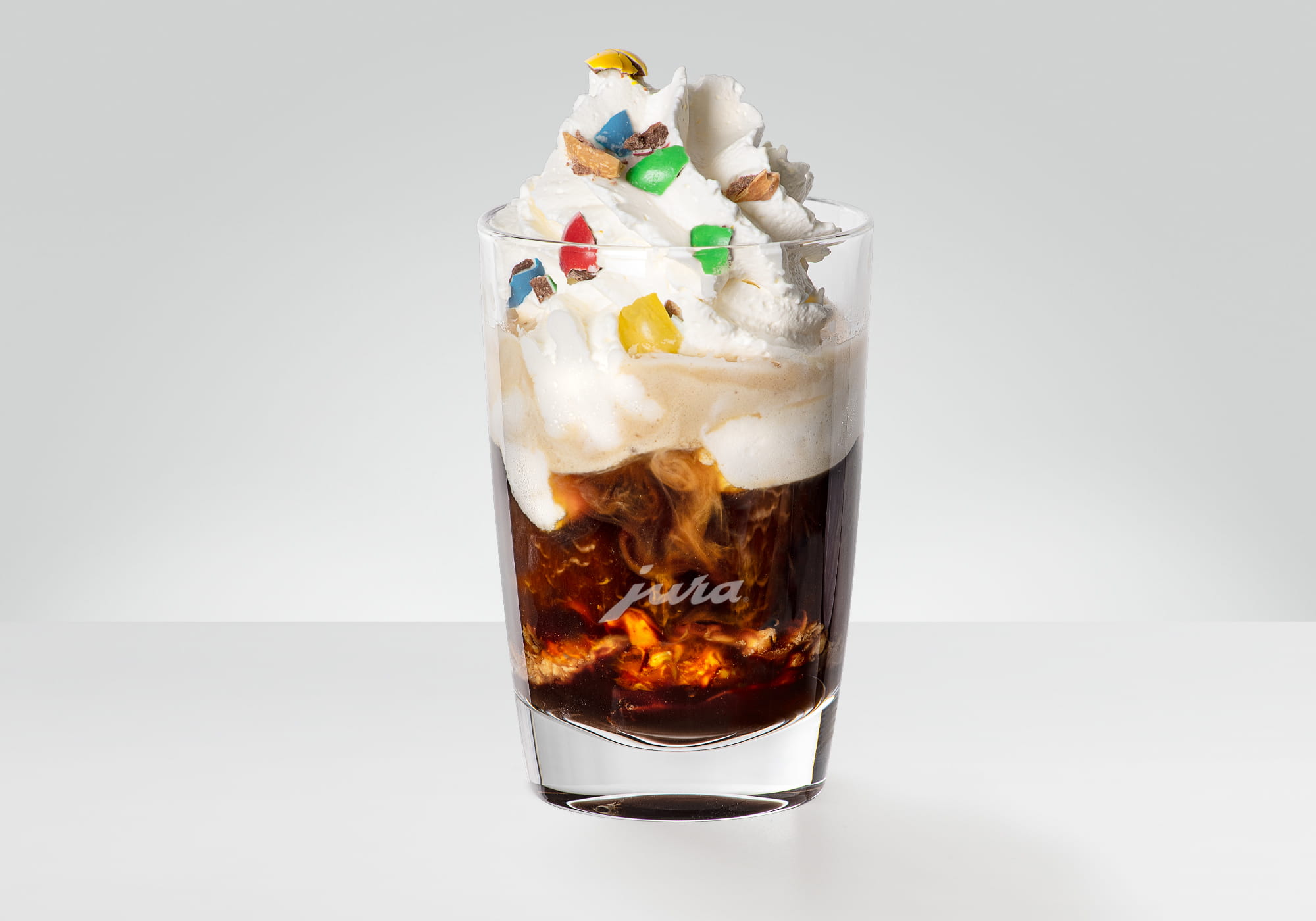 Espresso caliente con crema fría con sabor a vainilla.